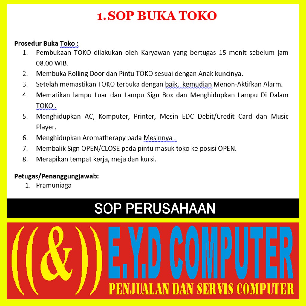 Jual Sop Perusahaan Minimarket Retail Moderen Lengkap Dengan Flowchart Jobdesc Panduan Standardisasi Toko Shopee Indonesia