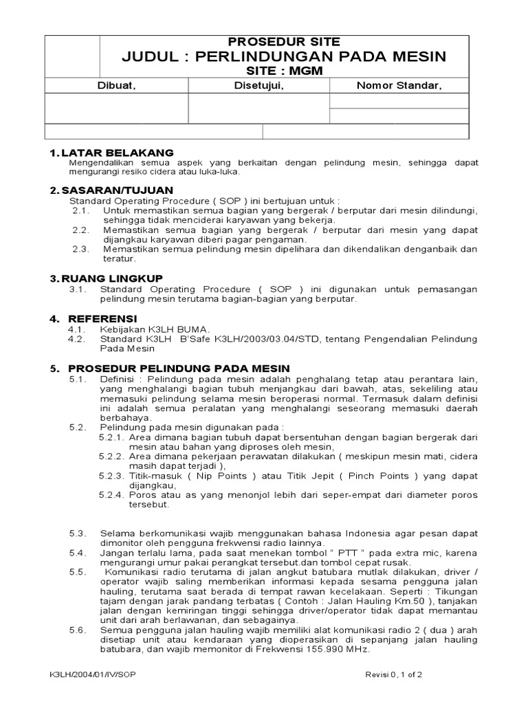 Sop Perlindungan Pada Mesin Pdf